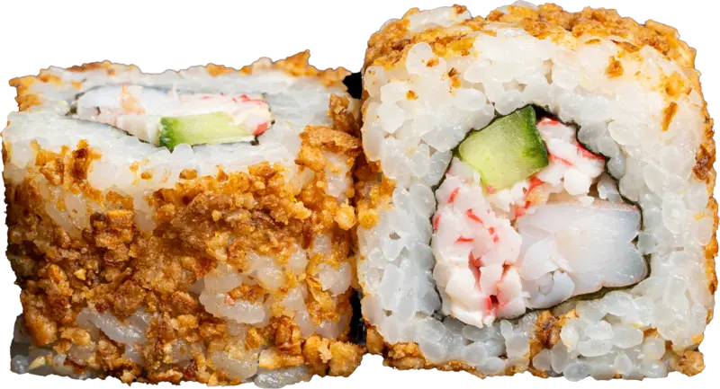 Krevetės, krabų lazdelės, agurkas, karai padažas, svogūnų traškučiai