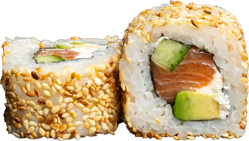 Lašiša, agurkas, avokadas, sūrio kremas, sezamo sėklos